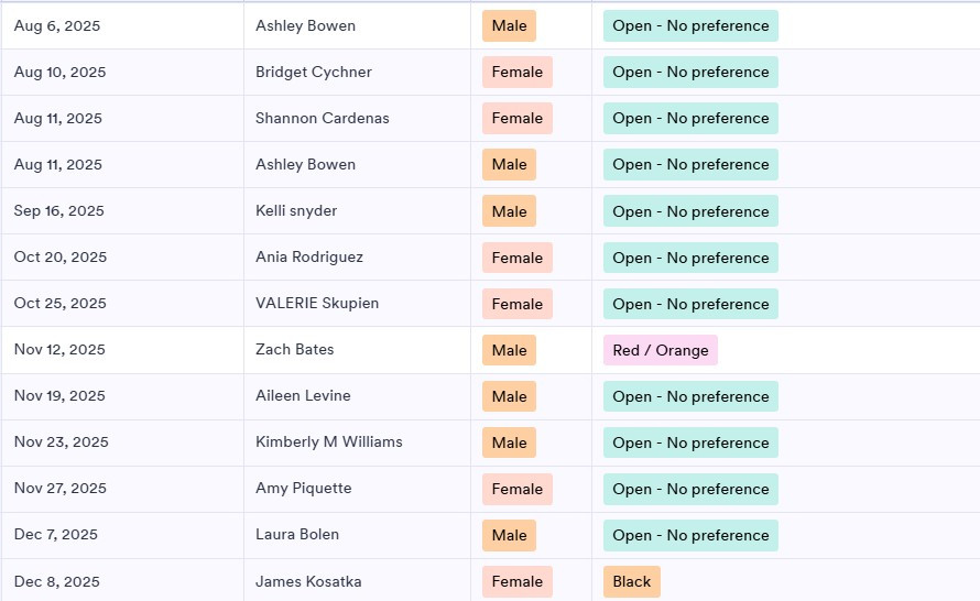 Your application date, name, and preferred kitten gender and color will be automatically displayed on our website Waitlist once your application has been completed and approved.