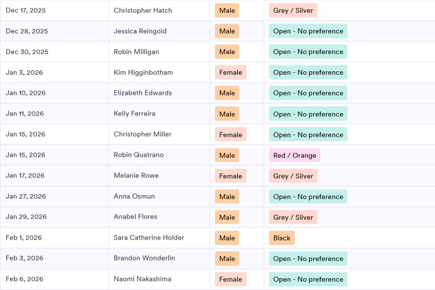 Your application date, name, and preferred kitten gender and color will be automatically displayed on our website Waitlist once your application has been completed and approved.
